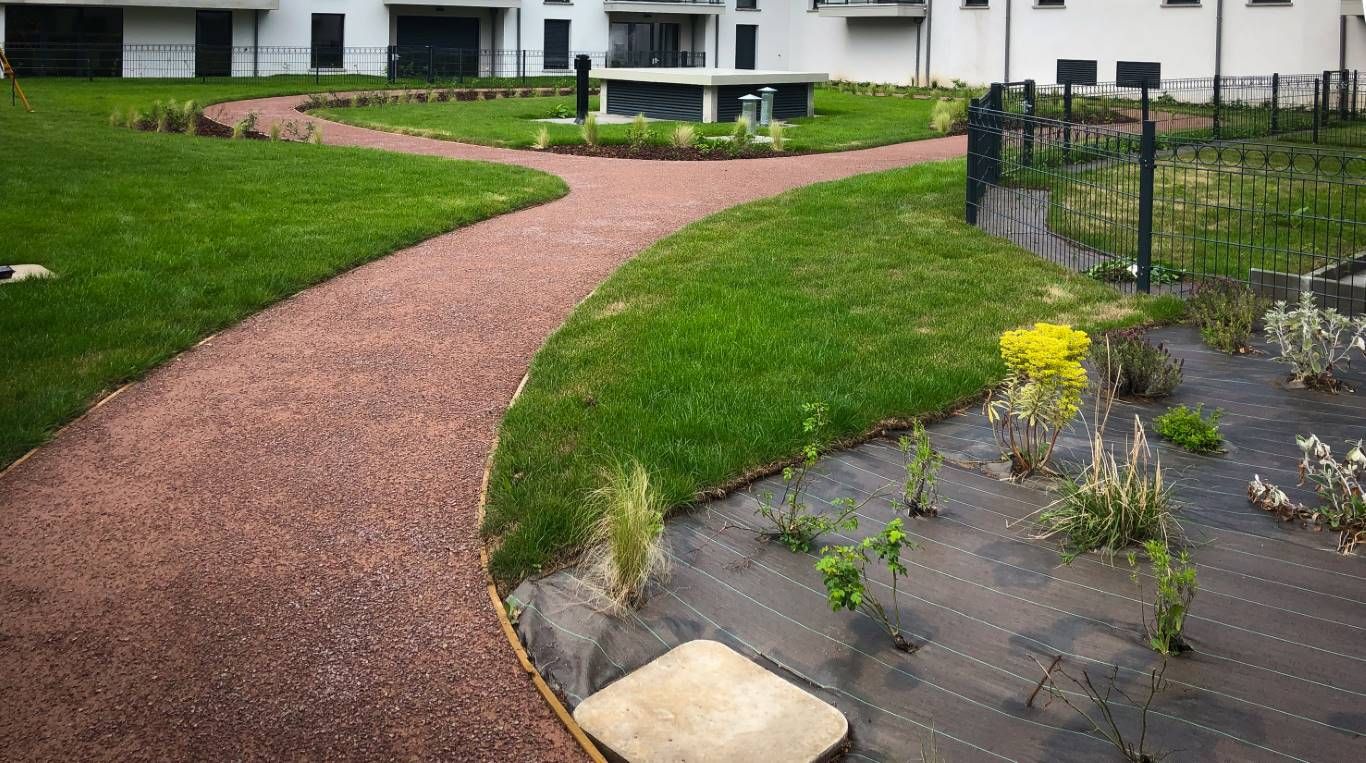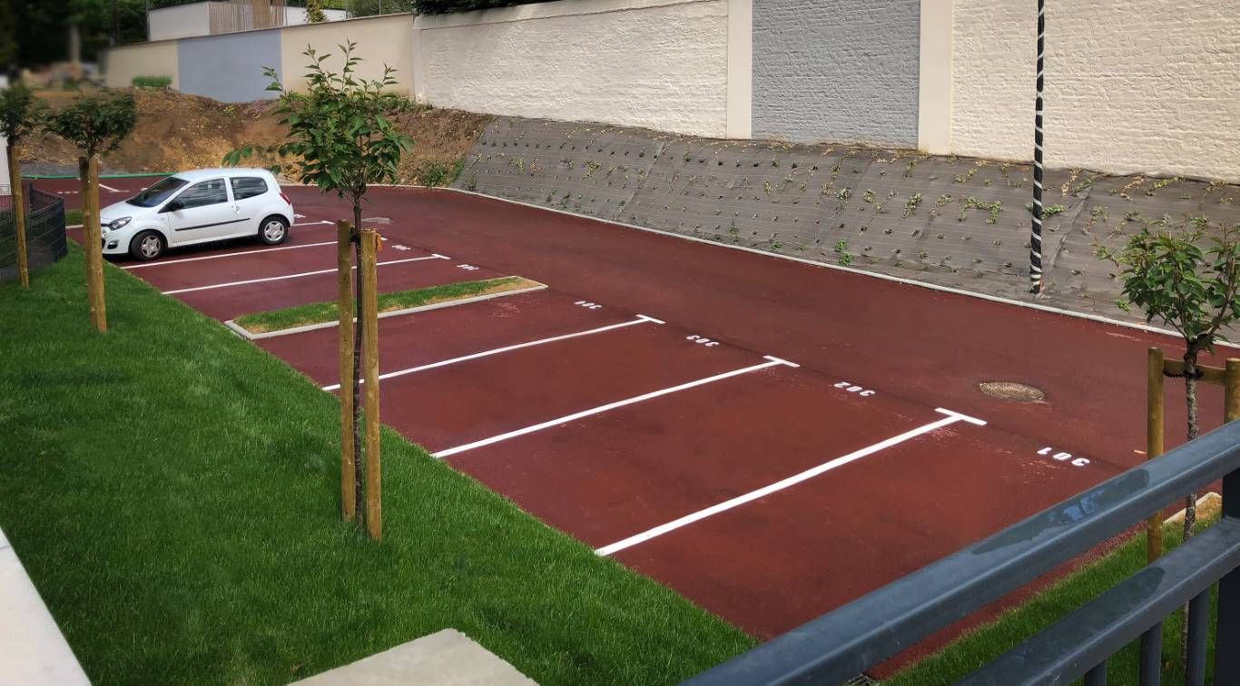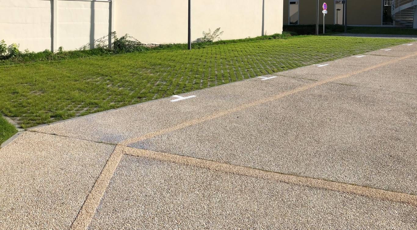 - Dalles Engazonnées, gravillonnages ou dalles mousses, mélange terre-pierre